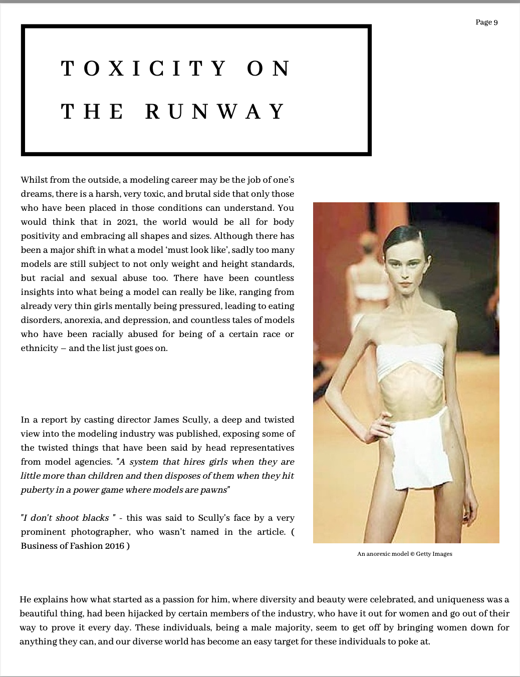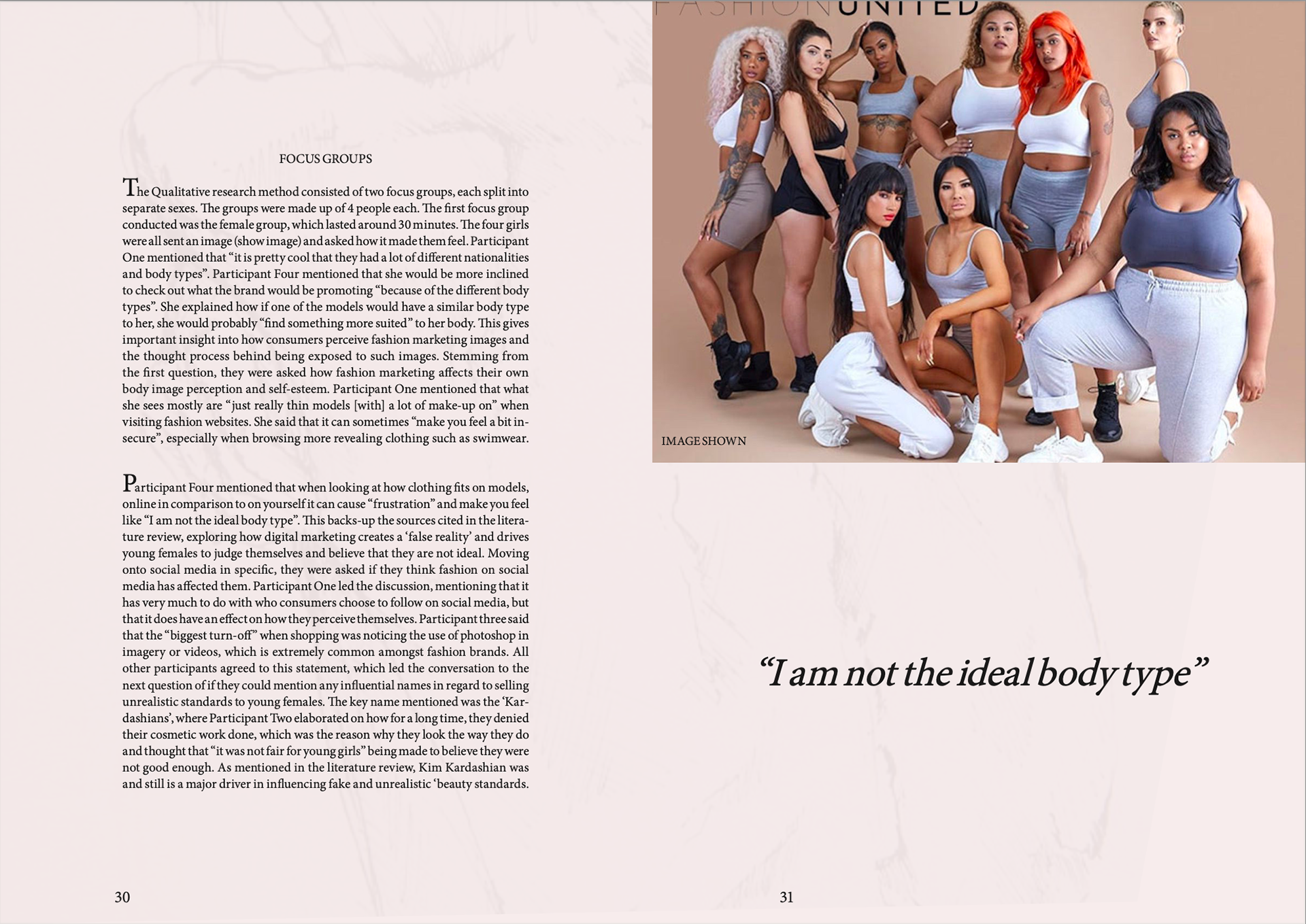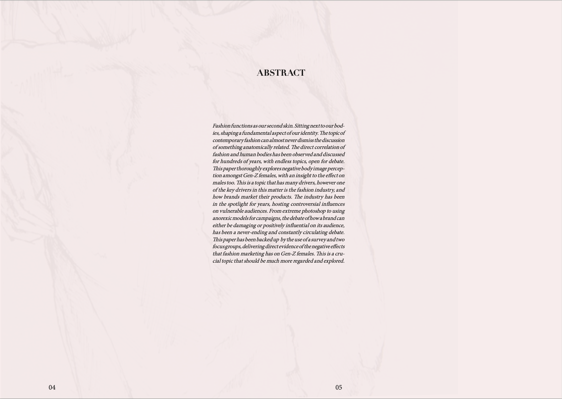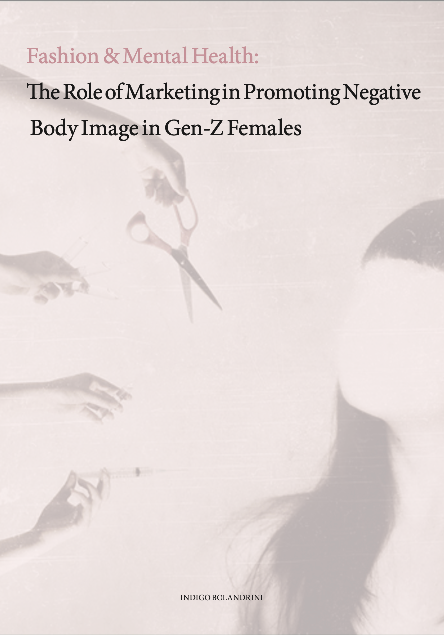 This comprehensive study delves deep into 'The Role of Fashion Marketing in Promoting Negative Body Image in Gen-Z Females'. This work includes looking at the key drivers behind fashion marketing's impact on young girls, including the historical perspective. It explores the physical and psychological health implications, alongside, includes a primary research study, consisting of surveys and focus groups.